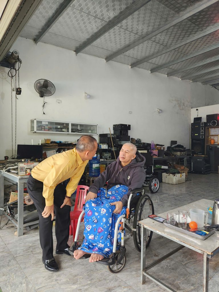 Mr. Nguyen To Nguyen once dreamed of becoming a teacher, but polio changed his path. He became an electronics repairman instead. Recently, a storm destroyed his home, and the stress led him to suffer a stroke, leaving his right hand nearly paralyzed.