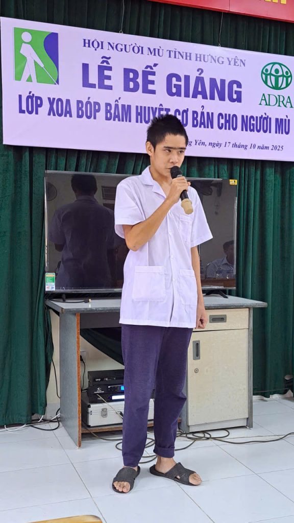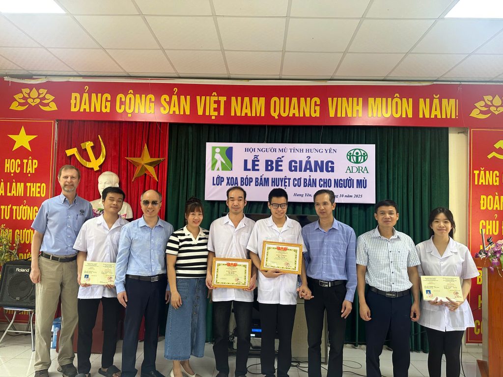 ADRA participated in the graduation ceremony of the basic massage and acupressure course for visually impaired individuals in Hung Yen. After completing the course, the graduates will work at massage centers run by the Association of the Blind or at private establishments. Some participants with the capability may even open their own home-based massage services. This profession provides a stable source of income and opportunities for social integration, offering not only economic benefits but also helping visually impaired individuals become more confident in life.